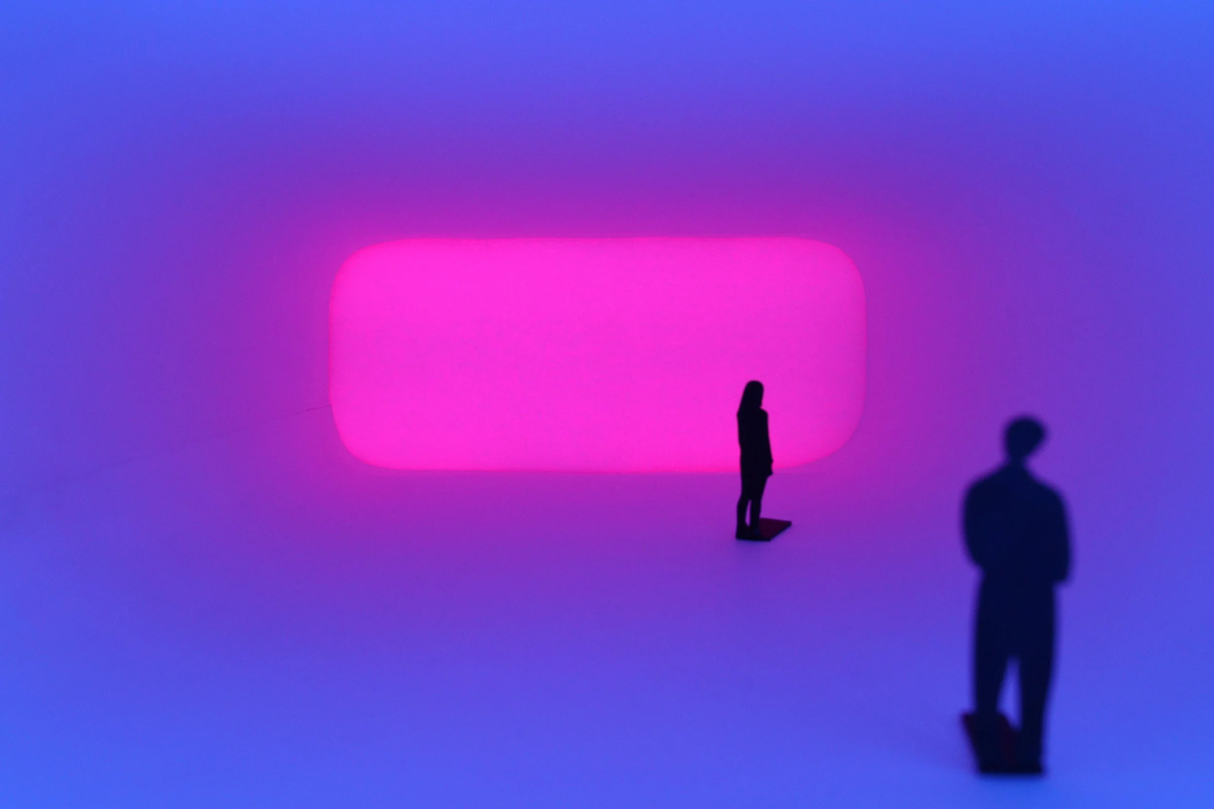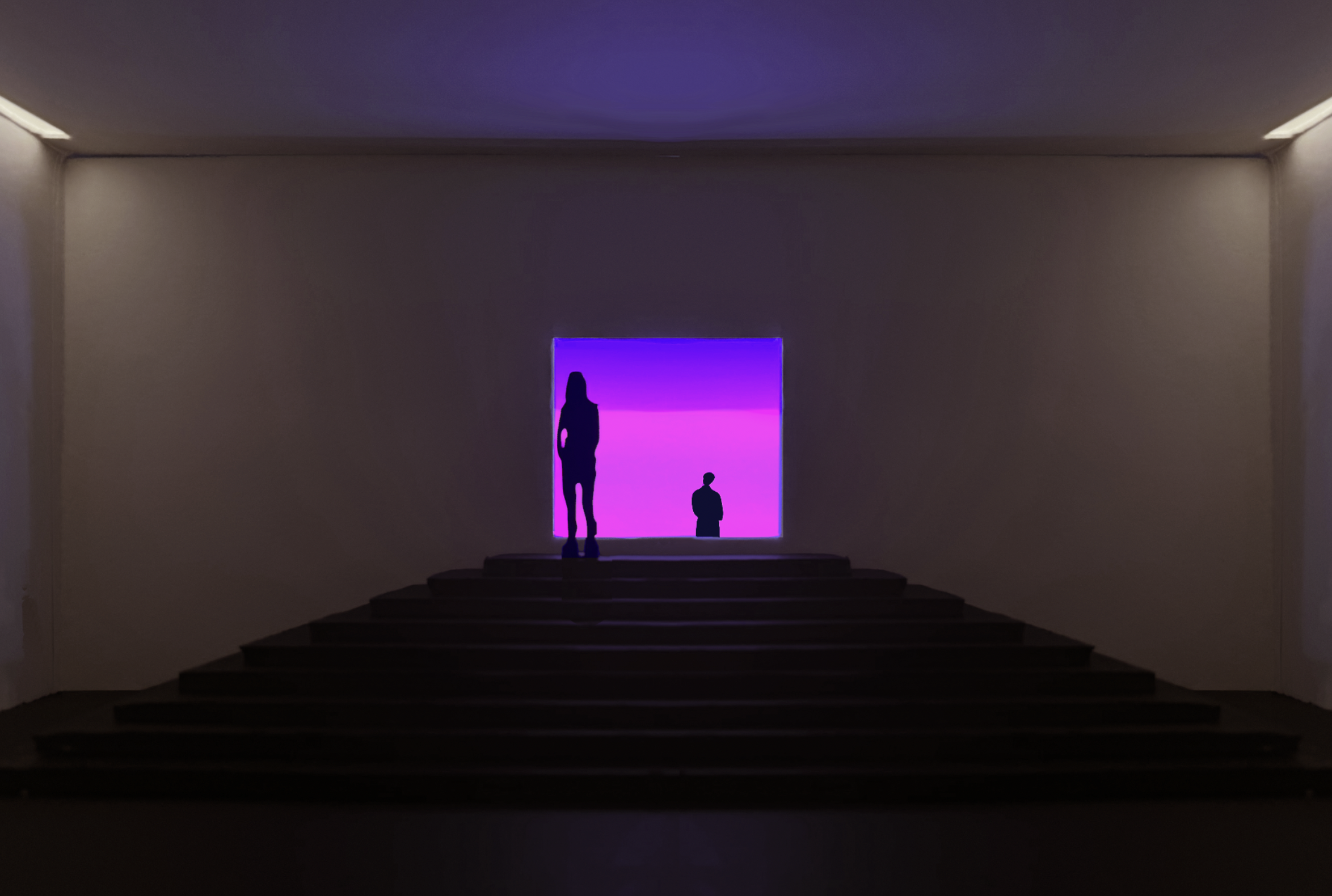 Aftershock is an immersive installation created for Copenhagen Contemporary by James Turrell. The installation exhibits a cycle of changing colored lights in various combinations. The lights and colors make the room’s boundaries ambiguous, creating a sense of disorientation.
